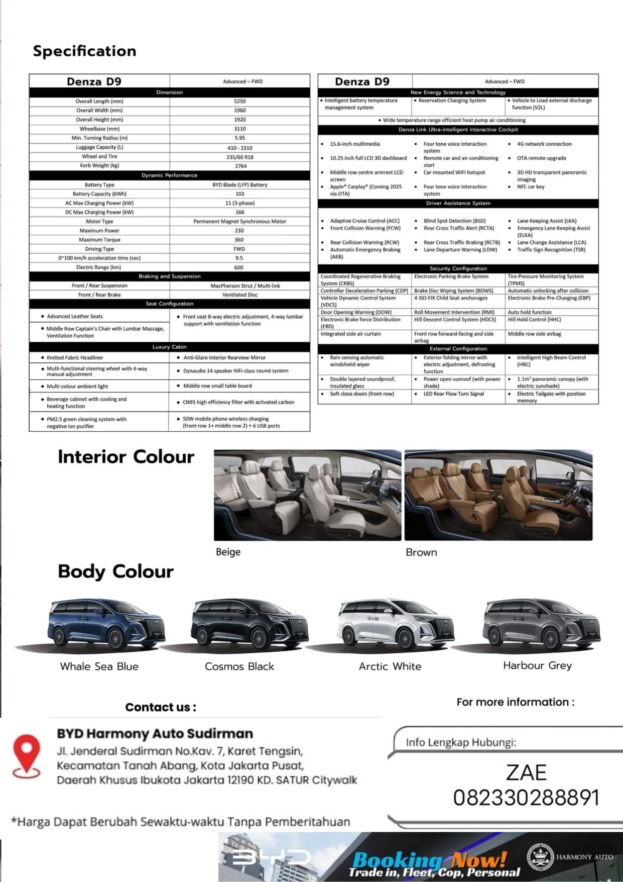 Dengan teknologi baterai yang efisien, Denza D9 dapat menempuh jarak yang cukup jauh dengan sekali pengisian daya. Hal itu menjadikannya pilihan tepat bagi mereka yang mengutamakan mobilitas tanpa polusi.